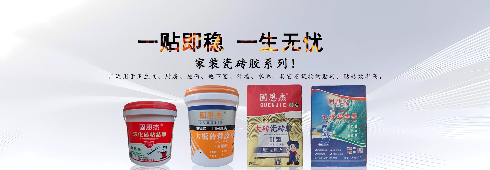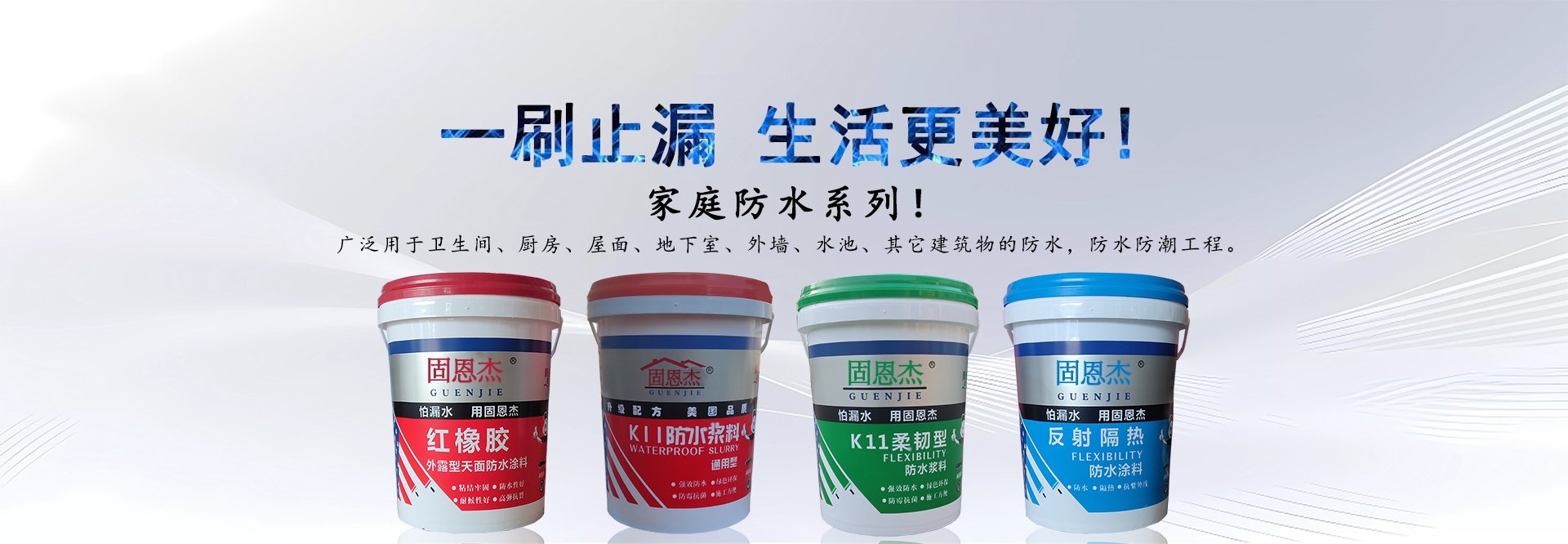 廣州固恩杰防水建材科技有限公司(簡(jiǎn)稱:固恩杰)是集研發(fā)、生產(chǎn)、銷售于一體的高新技術(shù)建筑材料制造企業(yè),與多個(gè)國(guó)際知名化工企業(yè)建立良好穩(wěn)定的戰(zhàn)略合作伙伴關(guān)系,公司目標(biāo)是打造中國(guó)最具競(jìng)爭(zhēng)力的防水品牌 。公司產(chǎn)品具有質(zhì)量穩(wěn)定可靠、耐久性好、綠色環(huán)保、對(duì)人體健康無毒害作用、使用方便、粘結(jié)力強(qiáng)、耐候性好、提高工程質(zhì)量、降低工程造價(jià)等優(yōu)勢(shì),是提升人們居住環(huán)境質(zhì)量的換代產(chǎn)品,廣泛應(yīng)用于新舊商住樓,賓館會(huì)所、辦公樓寓的室內(nèi)外裝修工程。